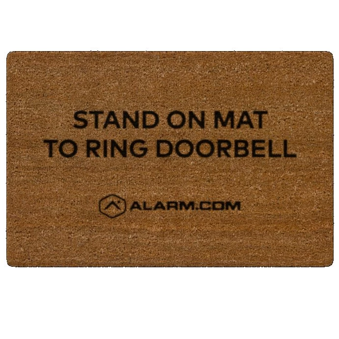 The optional Alarm.com ADC-VDBA-MAT Touchless Video Doorbell Mat is a standard doormat that can be placed within the Touchless Doorbell feature’s configured Ground Zone.