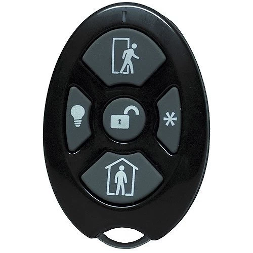 The alula RE600-5 Button FOB Connect+ Encrypted is a portable device used to remotely control a security system. The buttons can be configured to arm, disarm, trigger panic alarms, or control home automation functions.