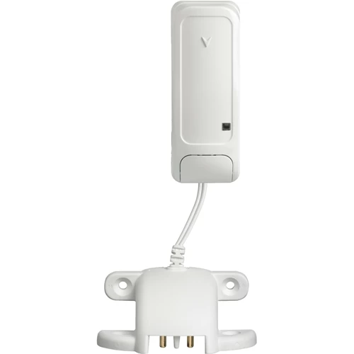 The DSC PowerG PG9985 Wireless Flood Detector is a fully supervised two-way wireless PowerG flood detector consisting of a probe connected to the device via a 1.8m (6ft) cable. The PG9985 senses the presence of water prompting advance warning of potential flooding. The transmitter is installed at a higher level on the wall with the probe located at floor level or a desired height. In the event that there is a water leak, the probe will detect the moisture and deliver the information to the transmitter.