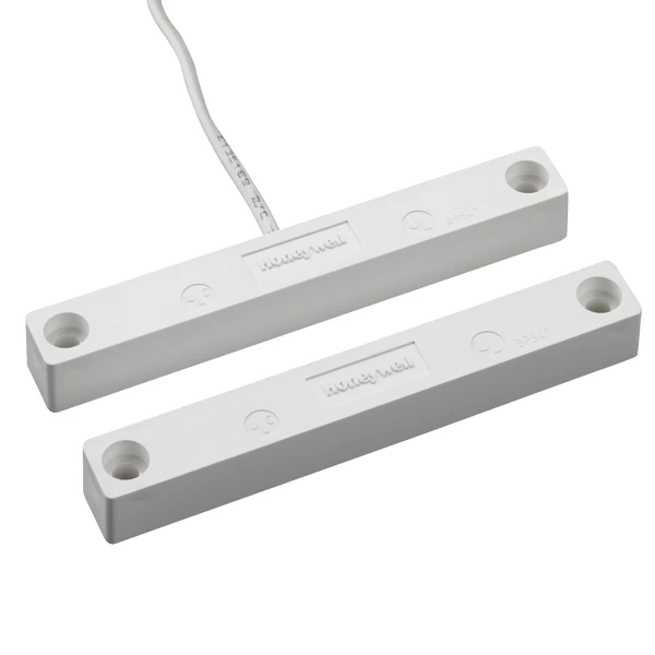 The Honeywell Home 7945WH XTP Surface Mount Magnetic Contact with leads instead of terminals. The 7945 is also a member of Honeywell’s XTP Series of commercial contacts. All XTP contacts are designed to protect against lightning strikes and power surges. As commercial contacts are often installed in outdoor buildings, power surges can be a major problem. If enough voltage runs through a contact, the internal reed switch becomes fused and the contact will never go into alarm regardless of whether the magnet is adjacent or not. Unfortunately, there is no way to supervise a fused contact. Unless you are regularly testing all of your commercial contacts, your property may not be protected if you are using a non-XTP commercial contact and it is installed outside. Use Honeywell XTP contacts so you don’t have to worry about a surge fusing your contacts as they can withstand a power surge of up to 2400VDC.