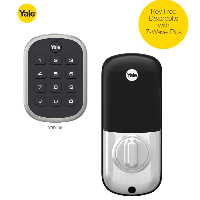 The Yale YRD136-ZW2-619 Pushbutton Deadbolt Z-Wave Lock- Satin Nickel is a key-free deadbolt with Z Wave Plus built-in keypad model. It replaces a standard deadbolt in minutes using just a screwdriver and can be added to dozens of Z-Wave smart home and alarm systems with one-touch enrollment.